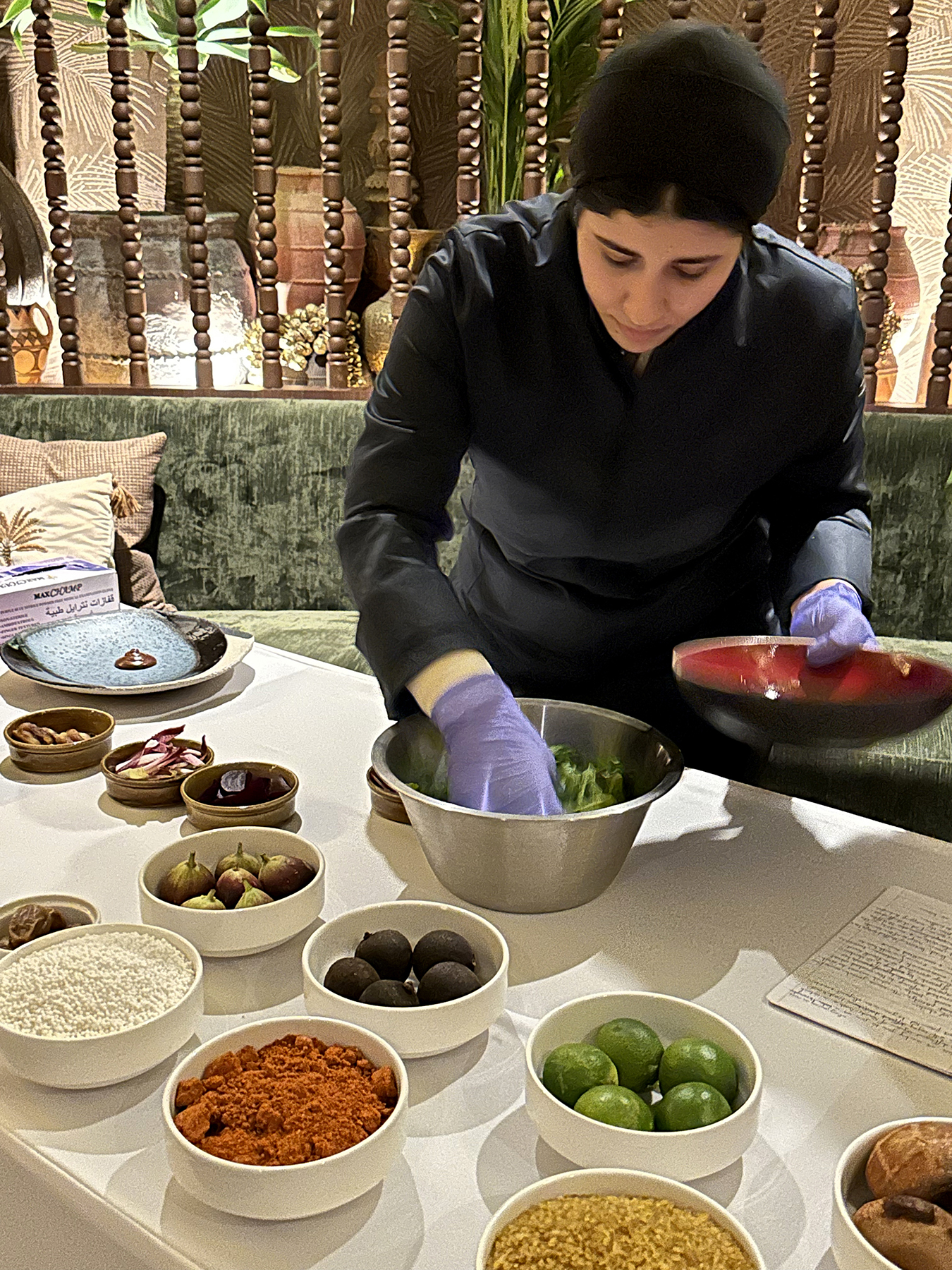 The morning featured celebrated guest speakers Chef Samar Jamal, co-author of Saudi Arabia: Cooking Her Heritage, and Chef Ahad Alghamdi of Nomas. Together, they guided attendees through a vibrant presentation of local ingredients and live food preparation, offering a rare glimpse into the artistry behind traditional Saudi cuisine. Guests were invited to savor dishes that highlighted the diversity of flavors across the Kingdom, from the intriguing Bread Box to the comforting Grilled Chicken Jareesh, and the refreshing Taif Journey drink that captured the essence of regional traditions.