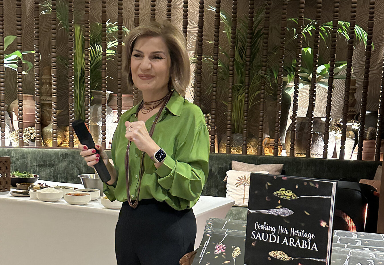 The morning featured celebrated guest speakers Chef Samar Jamal, co-author of Saudi Arabia: Cooking Her Heritage, and Chef Ahad Alghamdi of Nomas. Together, they guided attendees through a vibrant presentation of local ingredients and live food preparation, offering a rare glimpse into the artistry behind traditional Saudi cuisine. Guests were invited to savor dishes that highlighted the diversity of flavors across the Kingdom, from the intriguing Bread Box to the comforting Grilled Chicken Jareesh, and the refreshing Taif Journey drink that captured the essence of regional traditions.
